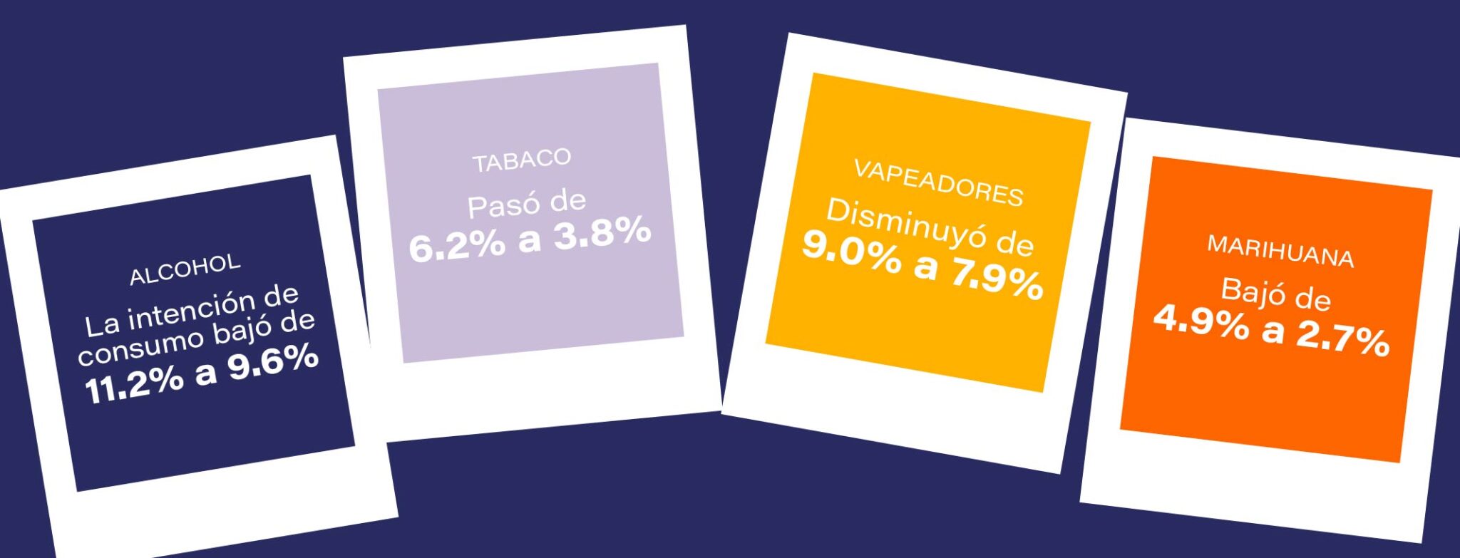 - Vapeadores: disminuyó de 9.0% a 7.9%