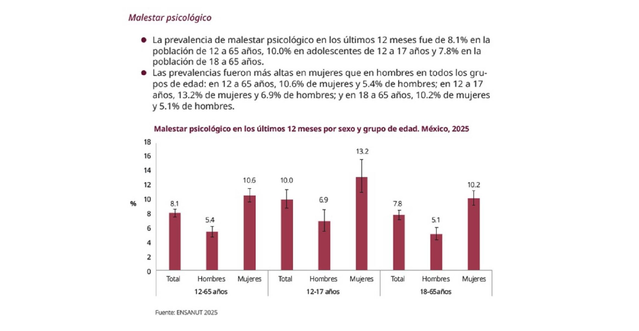 Estos indicadores son más elevados en mujeres adolescentes, quienes también reportan mayores niveles de malestar psicológico en comparación con los hombres.